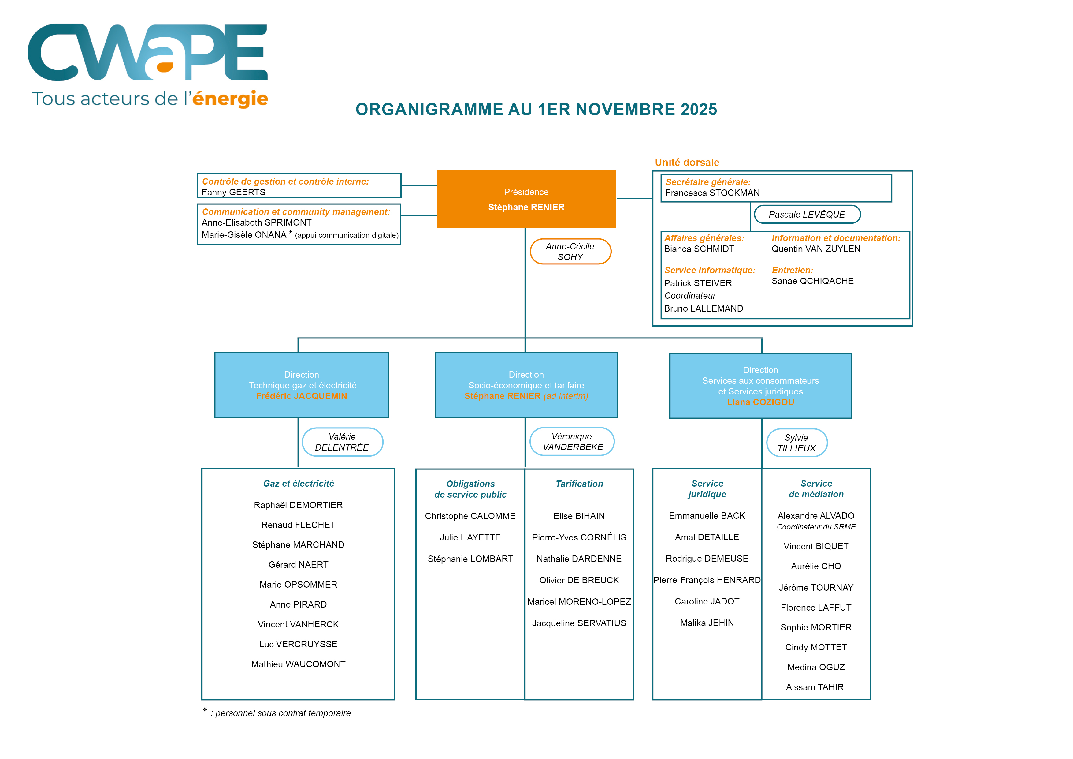 Au 1er novembre 2025, l’équipe de la CWaPE est composée de 50 personnes.