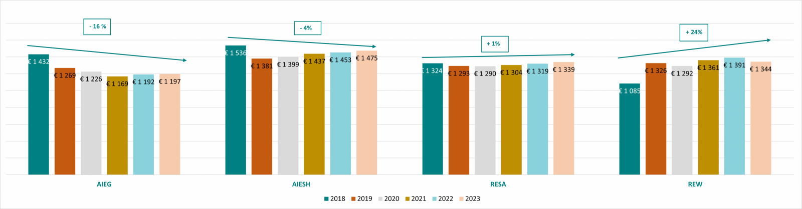 Depuis 2024, les prestations courantes sont tarifées de la même façon à travers la Wallonie. Décidée déjà en 2018, l’harmonisation des tarifs impose un même libellé pour un même contenu partout en Wallonie, au moins pour les prestations les plus courantes, et entraîne l’uniformisation des prix. En termes de prix, l’année 2024 a été une année de transition : avec l’harmonisation et l’uniformisation, la facture avait grimpé ou diminué selon la localisation de l’utilisateur et ses besoins. Pour 2025 et les années suivantes, les tarifs annuels progressent de 1,8% par an.