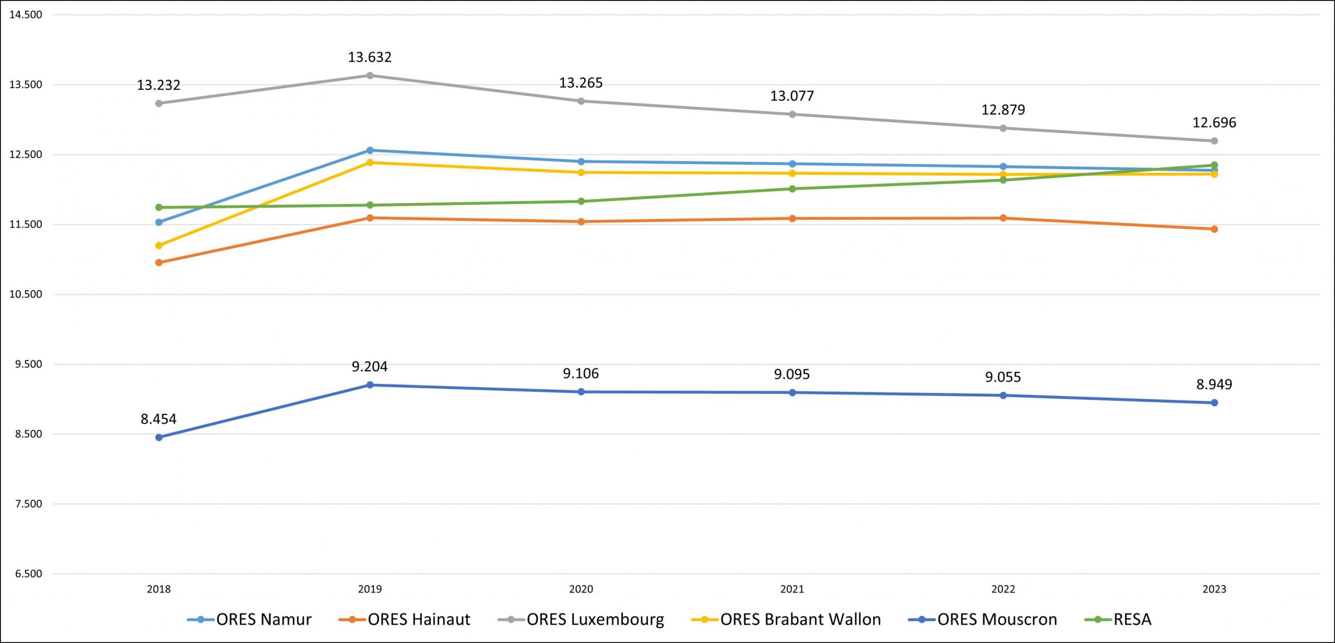 Le revenu autorisé de l’ensemble GRD wallons de l’année 2025 augmente de 12% par rapport à celui de l’année 2024. Cette augmentation provient notamment de l’indexation des coûts des GRD et de l’augmentation de leurs coûts d’achat d’électricité. Les décisions d’approbation des revenus autorisés électricité 2025 reprennent les informations détaillées pour chaque GRD.