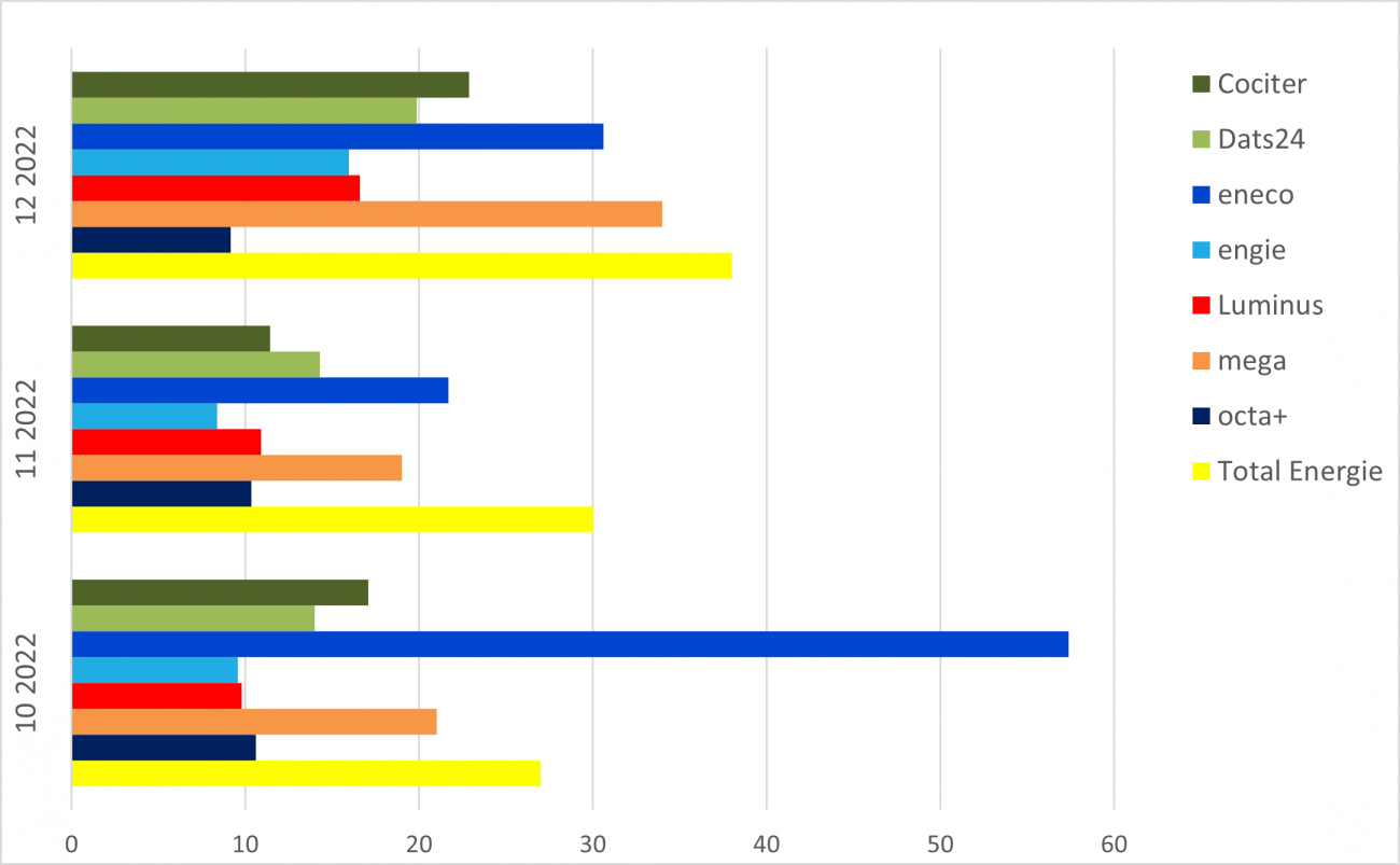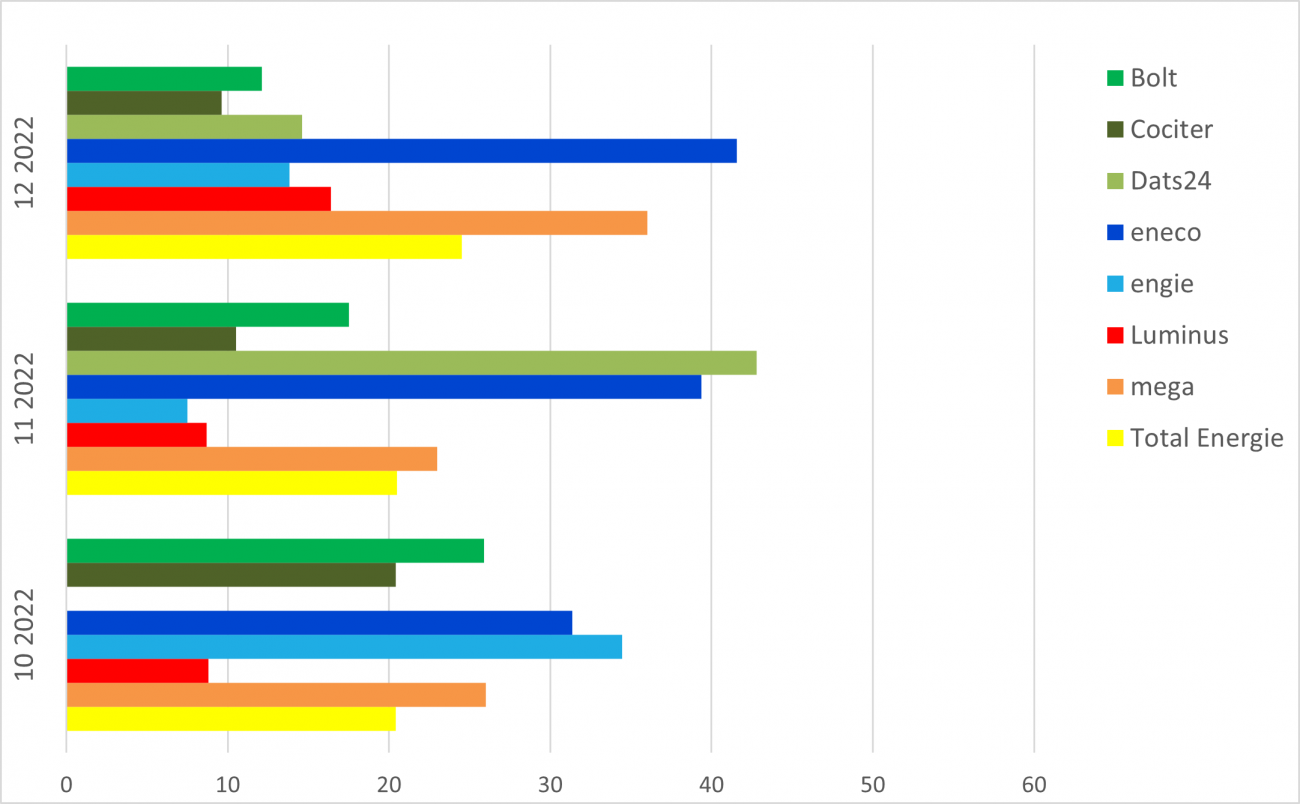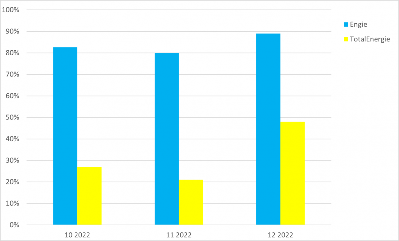 Die in den Grafiken unten gezeigten Ergebnisse beziehen sich auf das 2. Quartal 2025. Alle Grafiken sind in einer allgemeinen Datei zusammengefasst : Bericht zu den Leistungsindikatoren der Strom- und Gasversorger für das 2. Quartal 2025 (= laufend aktualisiertes Dokument).