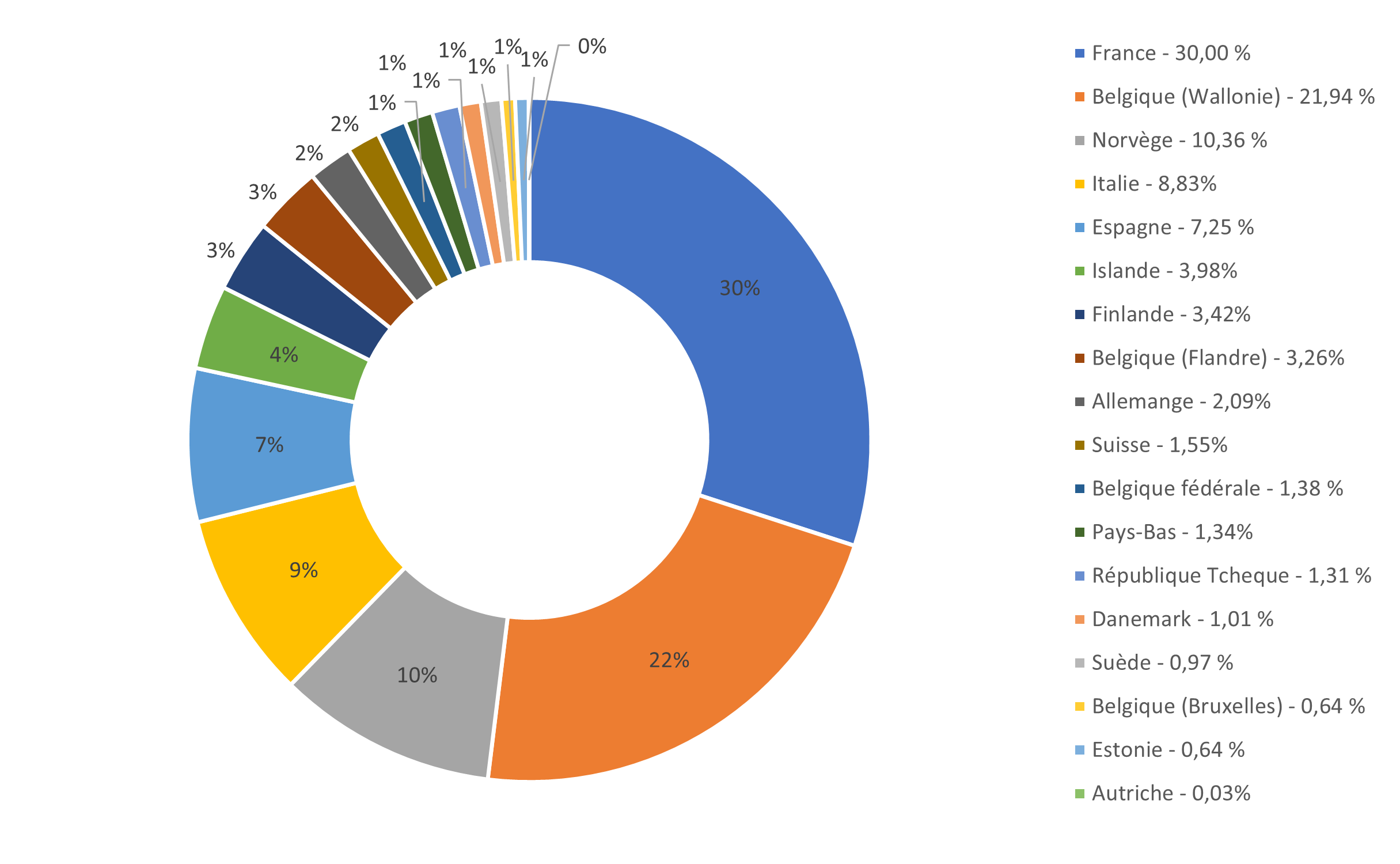 - Répartition par pays/région des GO-SER utilisées par les fournisseurs en 2024 en Wallonie