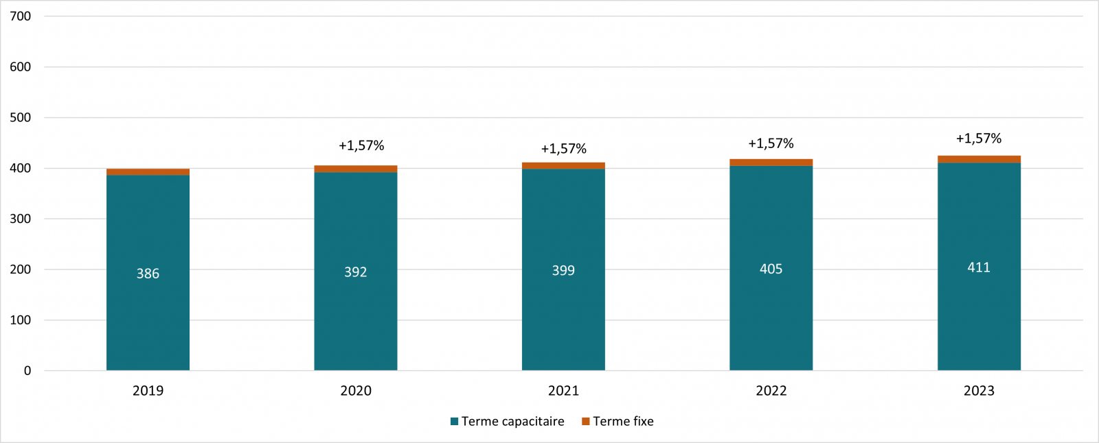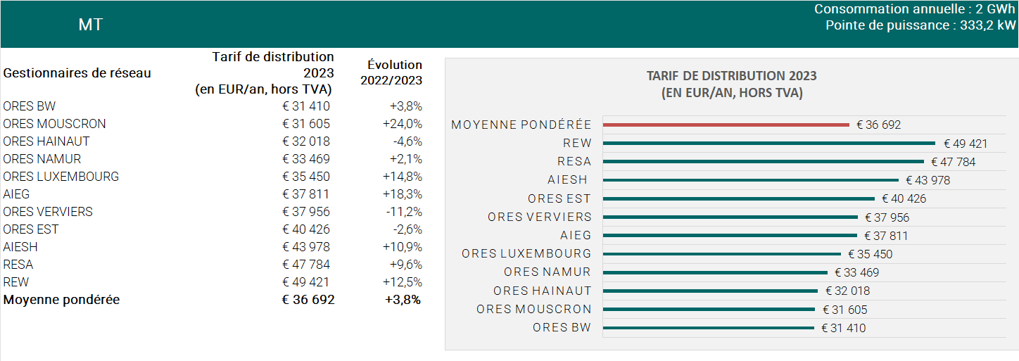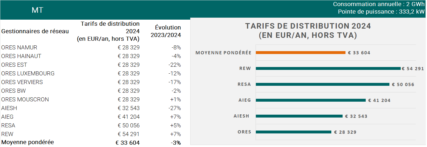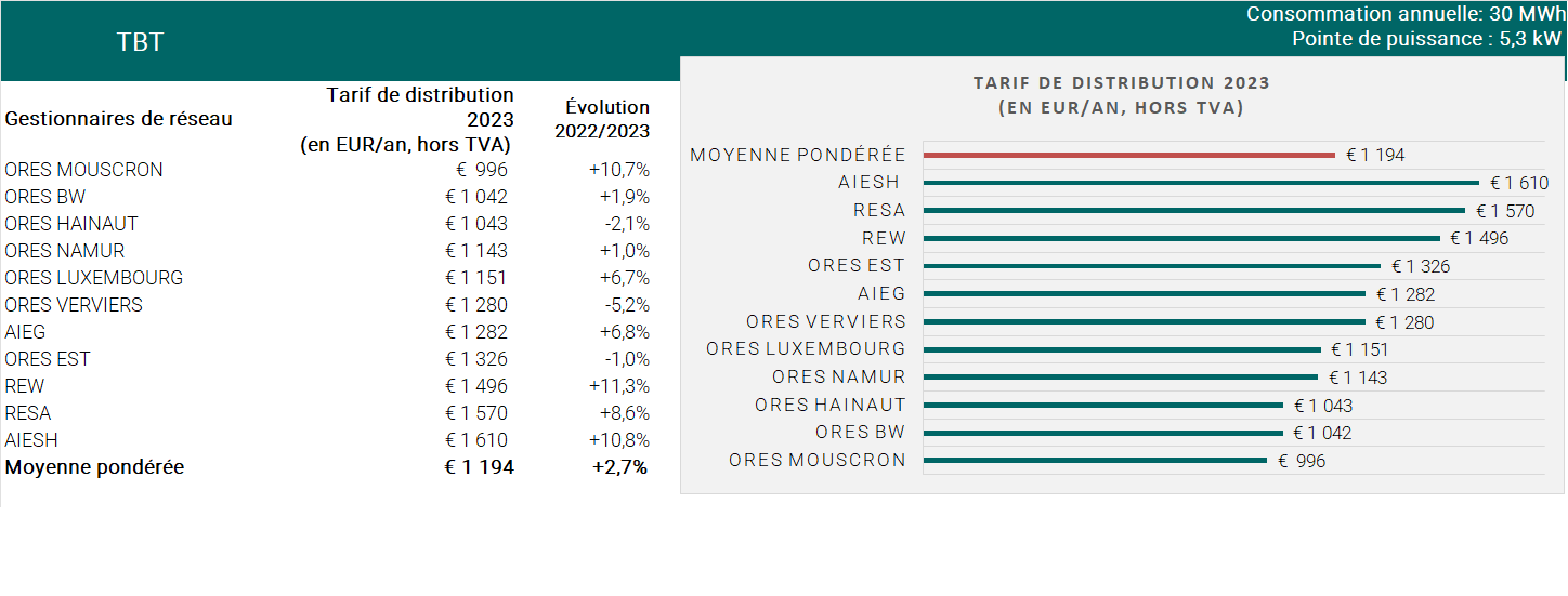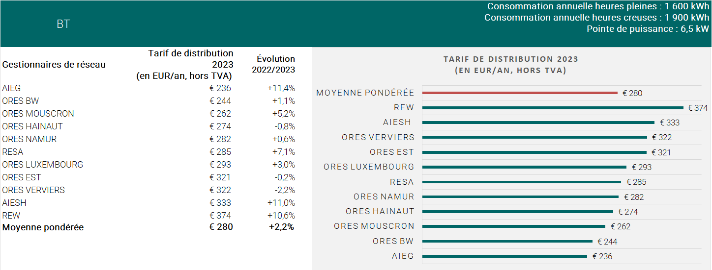 Pour voir les graphiques d’évolution des tarifs de distribution, consultez la page Graphiques