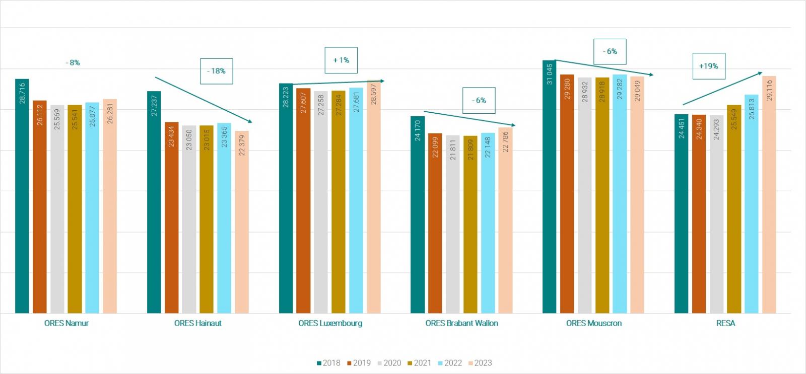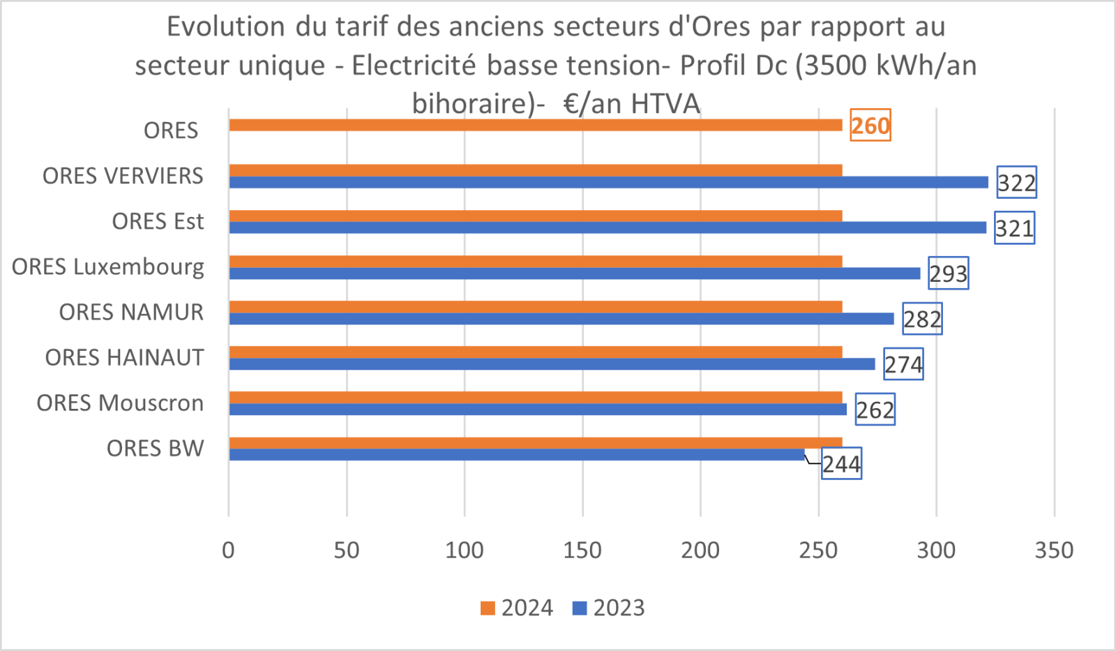 Depuis le 01/01/2024, suite à l'harmonisation de ses tarifs, ORES est référencé en tant qu'ORES ASSETS.
