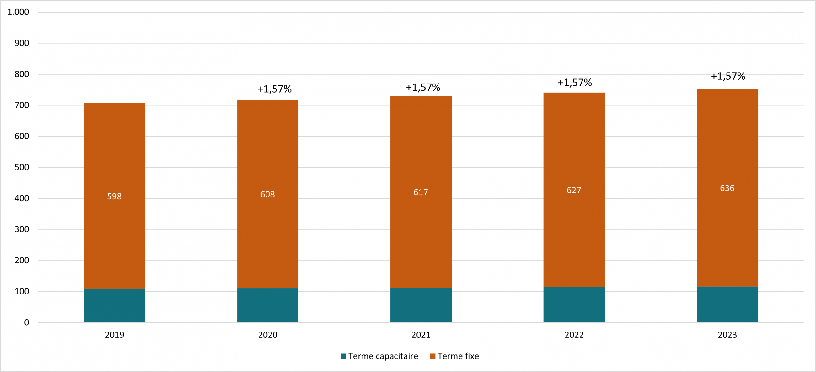 Pour établir leurs tarifs, les GRD traduisent ensuite le revenu autorisé 2025 en tarifs périodiques de distribution d’électricité sur la base de leurs meilleures prévisions de volumes et de puissances de prélèvement. De manière générale, les volumes de consommation sont en diminution au cours des dernières années ce qui engendre une augmentation des tarifs de distribution.