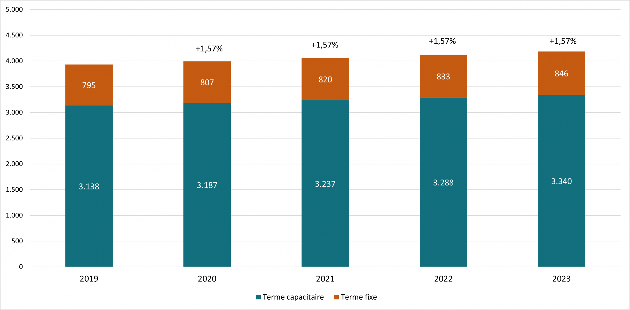 Les GRD « traduisent » ensuite le revenu autorisé 2025 en tarifs périodiques de distribution de gaz sur la base de leurs meilleures prévisions des volumes et des capacités de consommation. Ces volumes de consommation sont en baisse, particulièrement en ce qui concerne les groupes d’utilisateurs de réseau qui consomment du gaz pour des besoins de chauffage. La crise des prix de l’énergie de 2022 semble avoir réduit durablement les habitudes de consommation de cette clientèle.