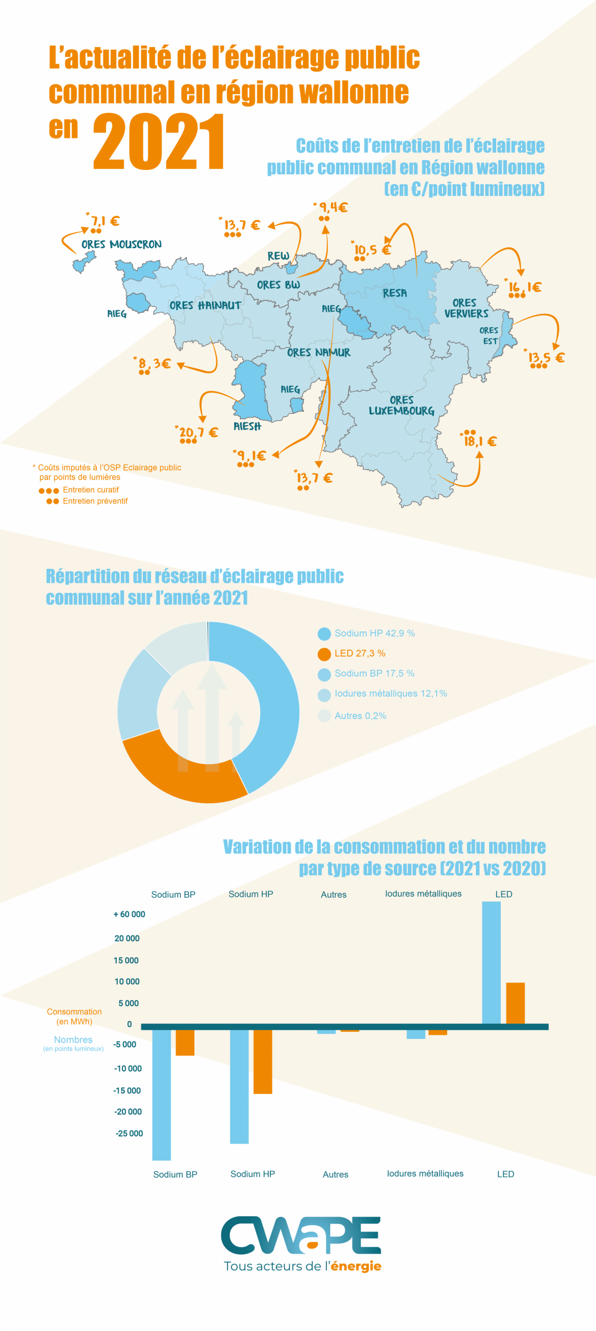 L’arrêté du Gouvernement wallon du 6 novembre 2008, tel que modifié par les AGW du 13 septembre 2012 et 14 septembre 2017 , a introduit, à charge des GRD électricité, des obligations en matière d’entretien et d’amélioration de l’efficacité énergétique des installations d’éclairage public.