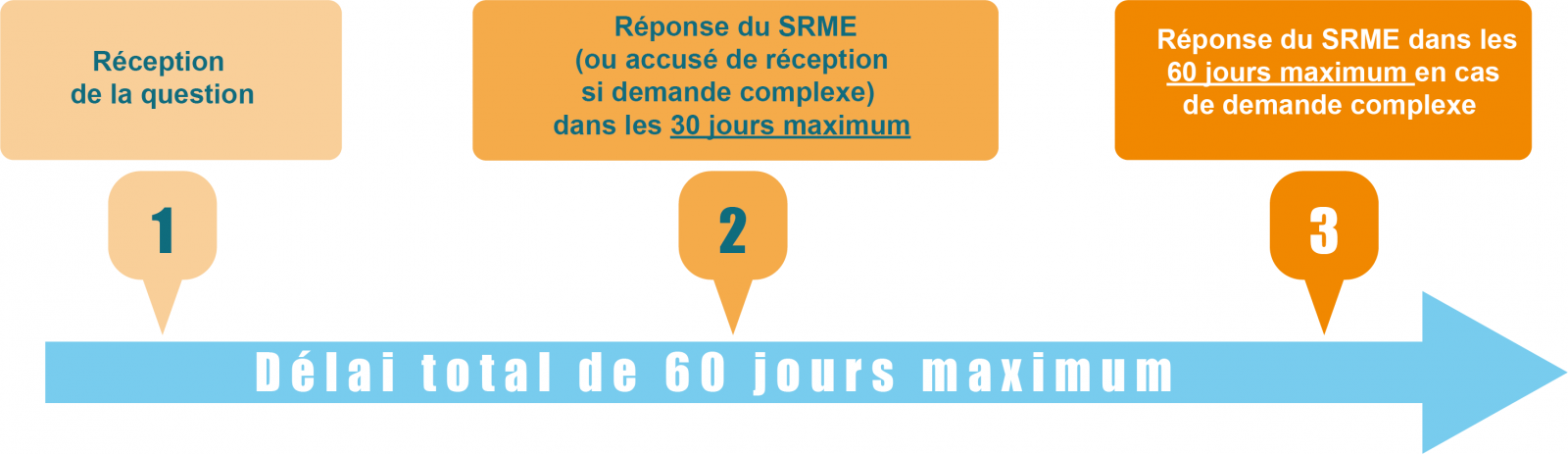 (Notez que ces délais réglementaires sont communiqués à titre indicatif et que le SRME s’efforce à traiter les questions dans des délais plus courts.)