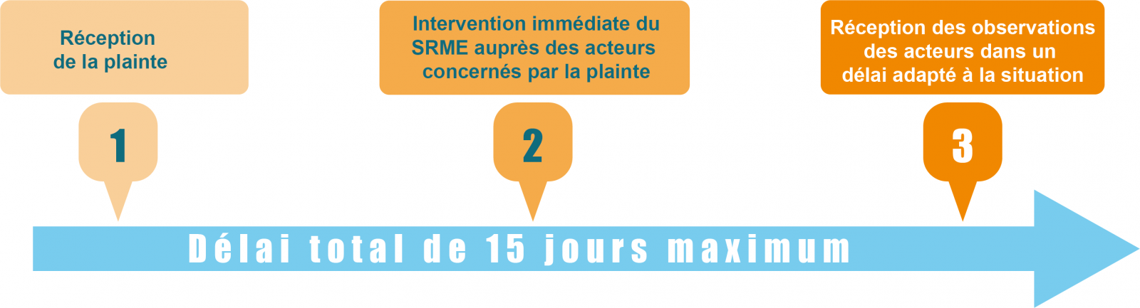 (Notez que ces délais réglementaires sont communiqués à titre indicatif et que le SRME s’efforce à traiter les urgences dans des délais adaptés à chaque situation particulière.)