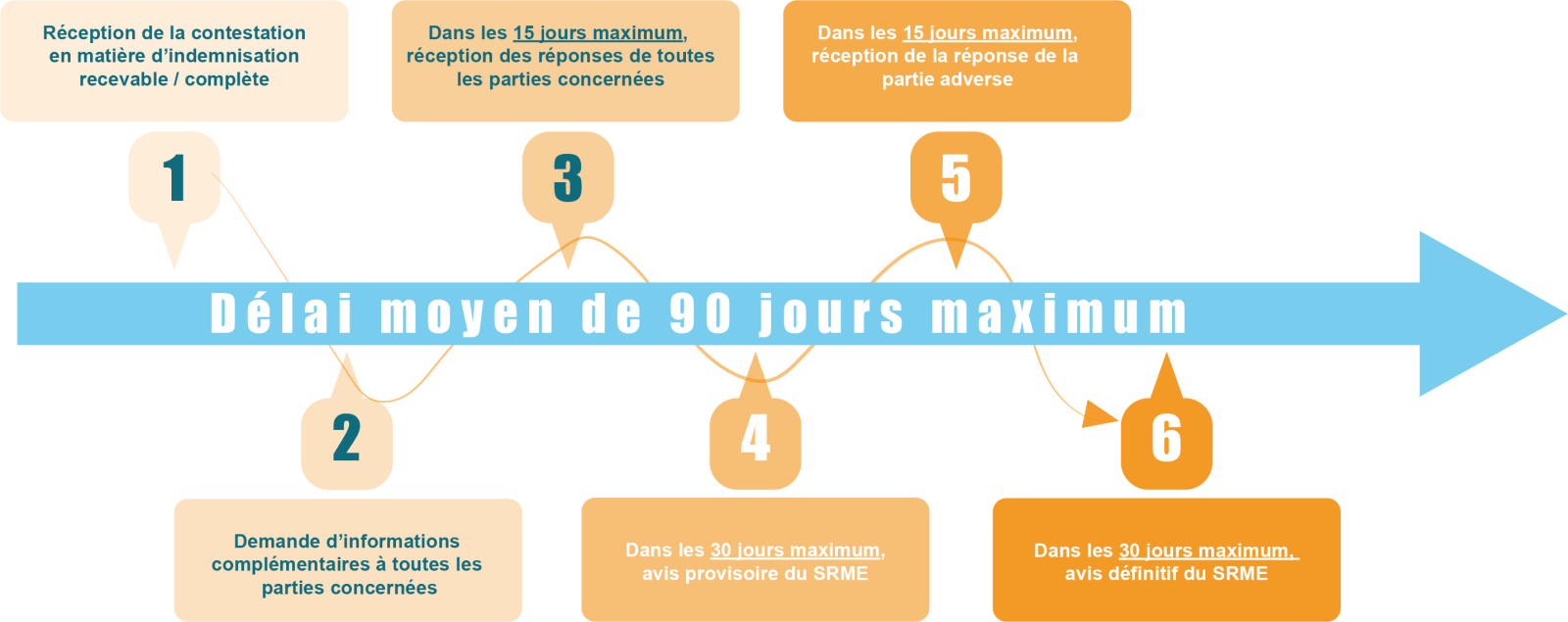 (Notez que ces délais réglementaires sont communiqués à titre indicatif et que ceux-ci peuvent, en pratique, être plus courts ou plus longs notamment en fonction de la complexité du dossier et/ou de la charge de travail du SRME.)