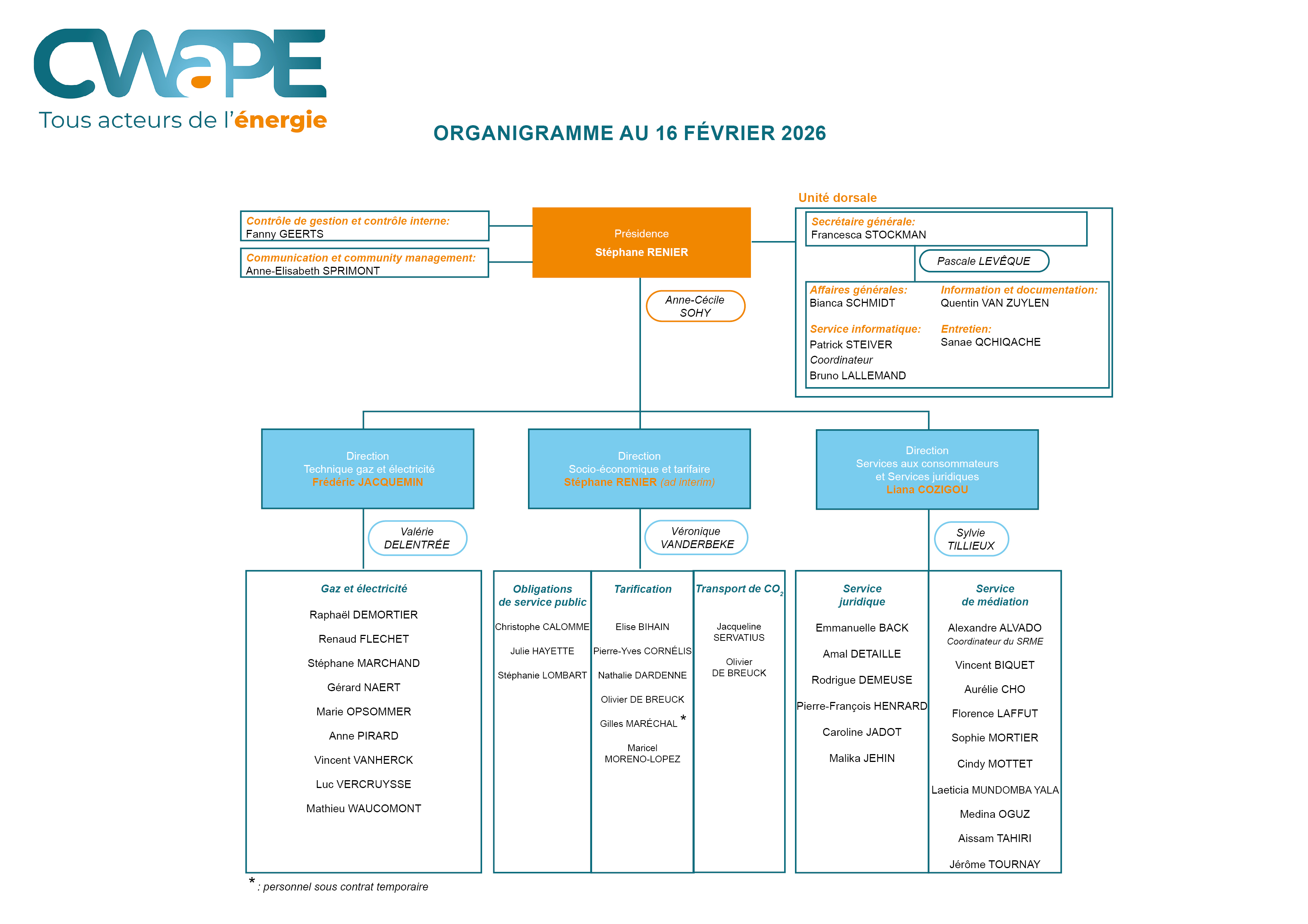 | STOCKMAN Francesca | Secrétaire générale | f.stockman@cwape.be |