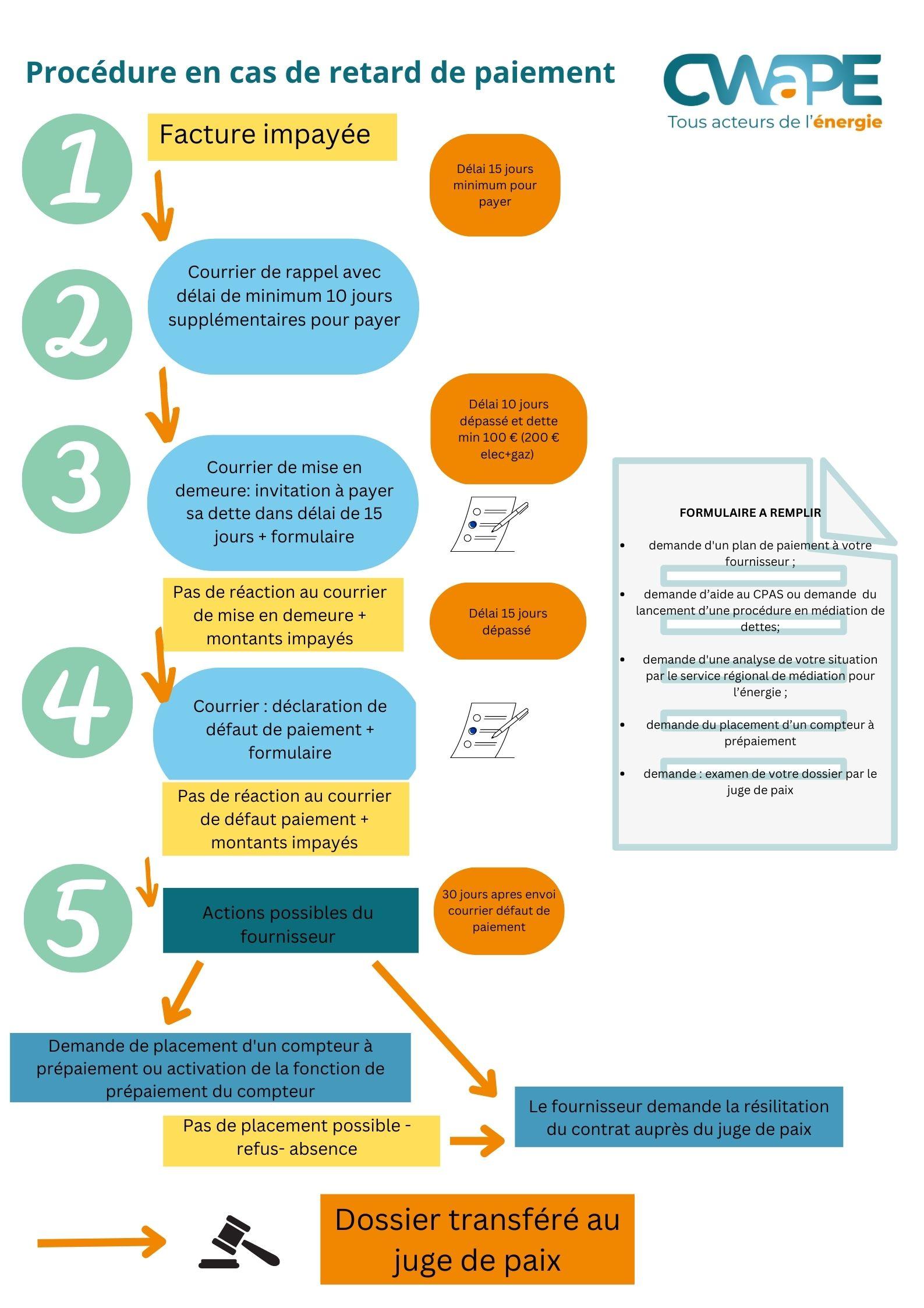 Lorsque vous ne payez pas vos factures d’énergie, votre fournisseur d’énergie doit respecter les étapes suivantes :
