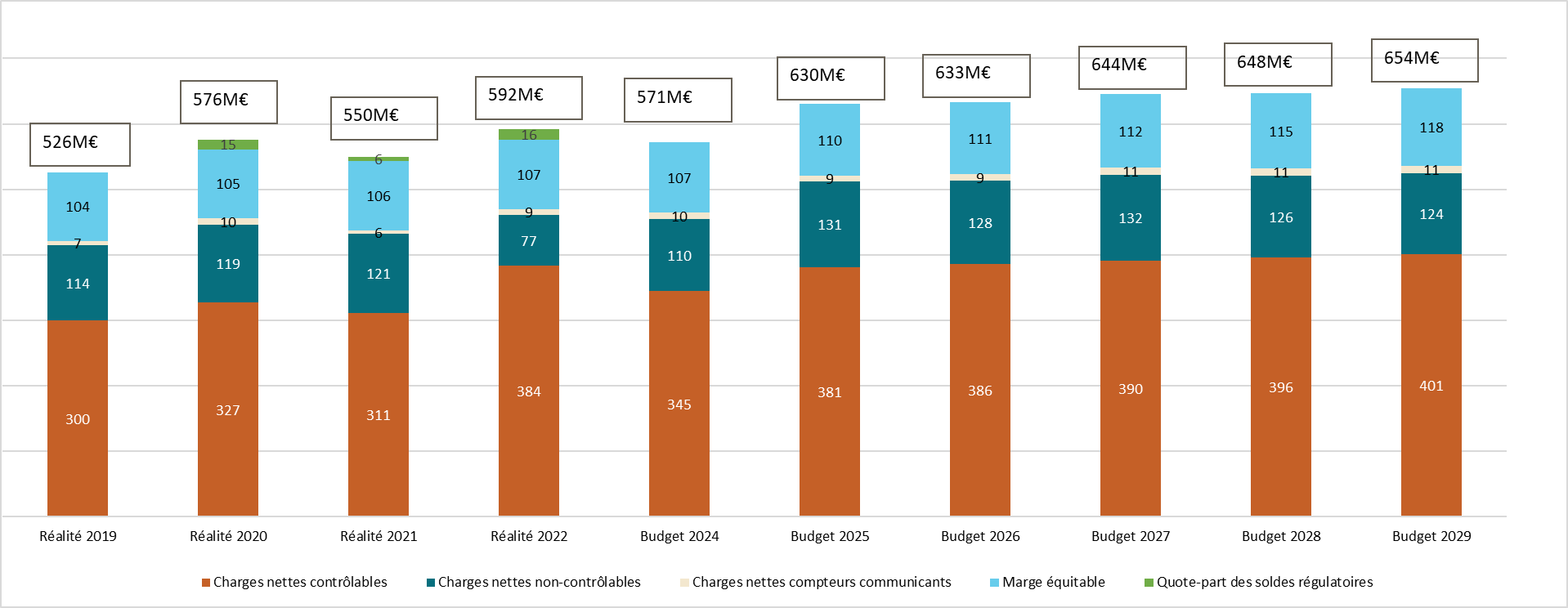 Le revenu autorisé augmente de 59M€ soit 10 % entre 2024 et 2025 et de 24M€ soit 4 % entre 2025 et 2029.